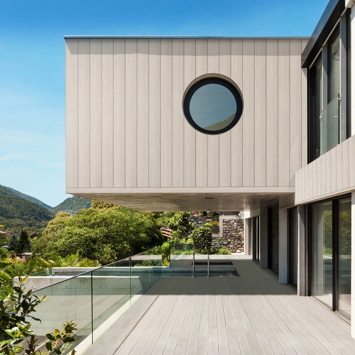 Limed Oak Envello Shadow Line+ Cladding Board has been moulded from Real Oak masters and designed to perfectly replicate smooth timber with a flat grained finish, giving a clean authentic look. The increased width of the Shadow Line+ board compared to standard timber boards means there is larger grain detail. This gives an enhanced visual impact, without risk of the board twisting or warping over time. Tested to the rigorous demands of BS EN 13501-1, the Shadow Line+ system achieves a classification of Euroclass D. Slip resistant Does not rot or warp like wood ‘Lost head’ fixing Low maintenance Stain resistant Resistant to algae Limed Oak GalleryThe Complete SystemEdging & Fascia Find out more Plas-Pro Find out more Subframe & Accessories Find out more